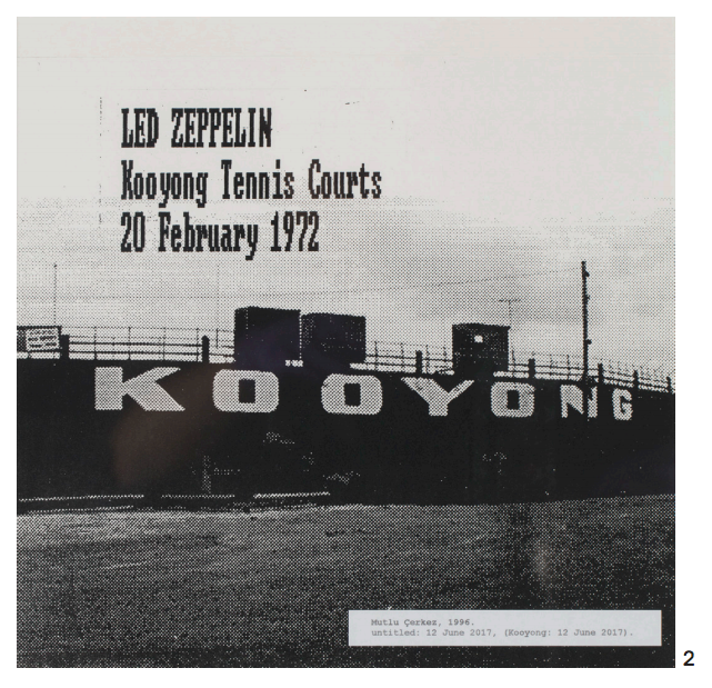 2. Untitled: 12 June 2017, (Kooyong: 12 June 2017) from the series New album cover designs for bootleg recordings of Led Zeppelin 1996, dot matrix and electrostatic print on paper, 55 x 48 cm (framed), State Art Collection, Art Gallery of Western Australia, Perth