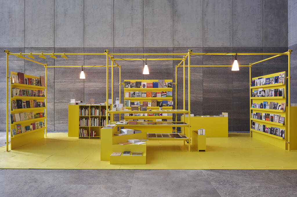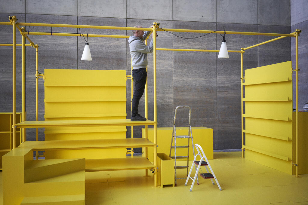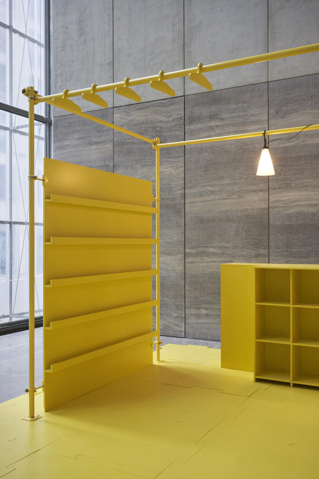 MZIN is a very special bookstore and project space in Leipzig and has just opened in a new place at the biggest museum in Leipzig (museum der bildenden Künste aka the museum of fine arts), that is designed and built like an island … a structure built entirely from old material, adding some framework, color and a puzzle floor.