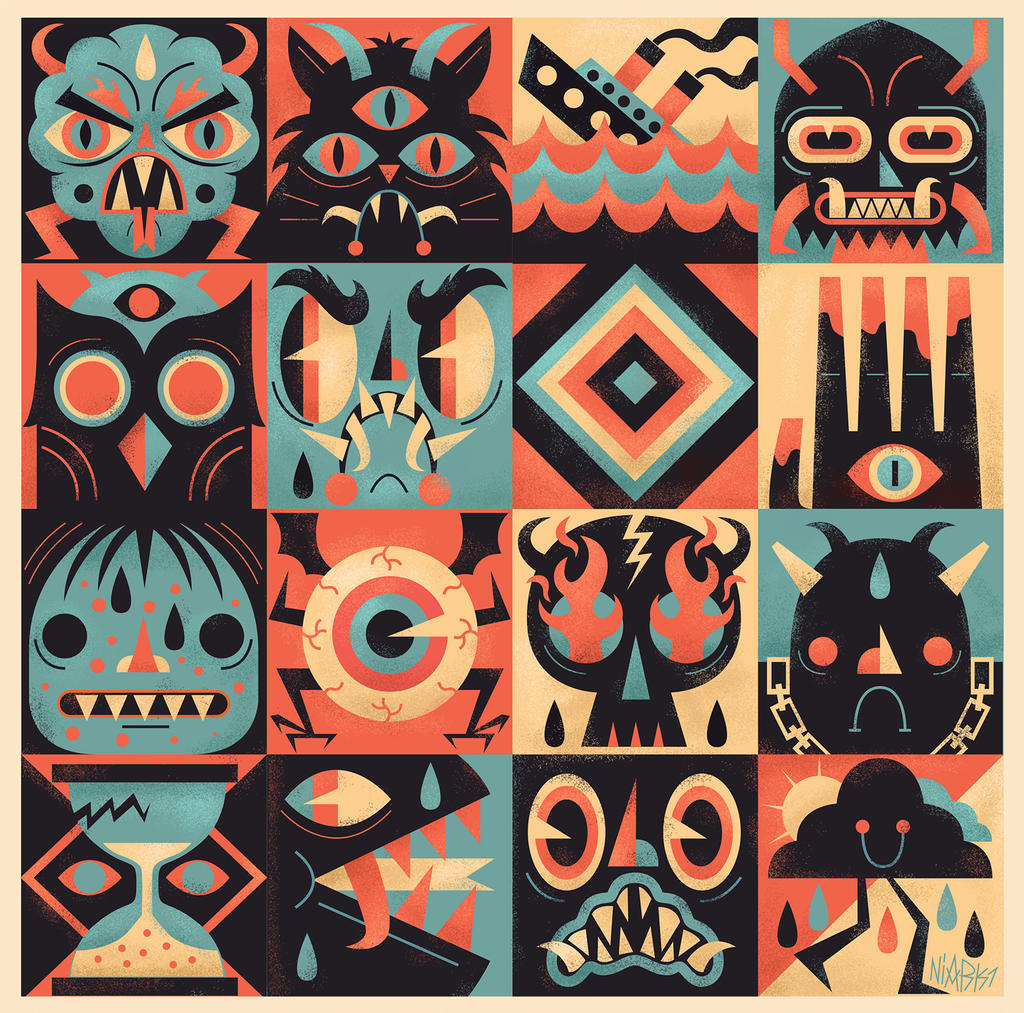 Niark1's characters represents dreams and fears that rise on the horizon and shape into detailed monsters, who might catch you at night..
