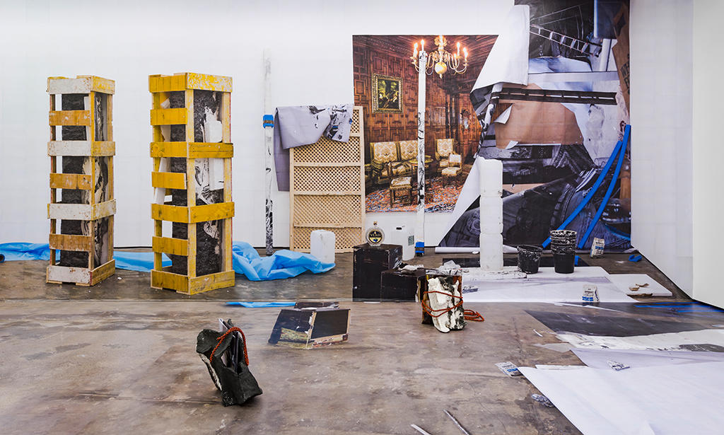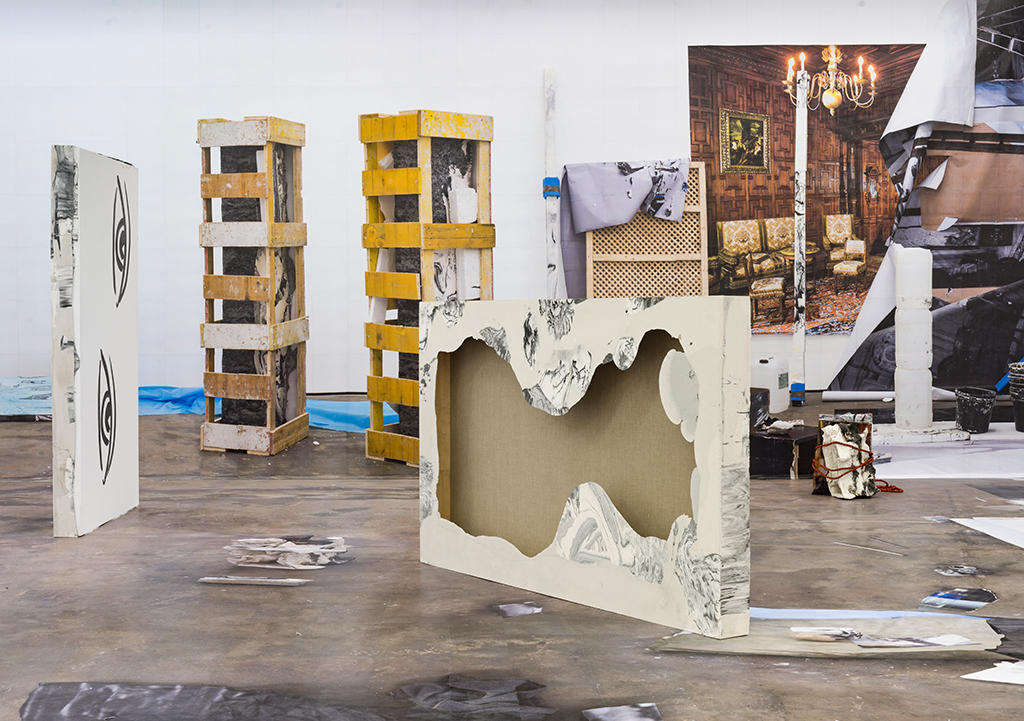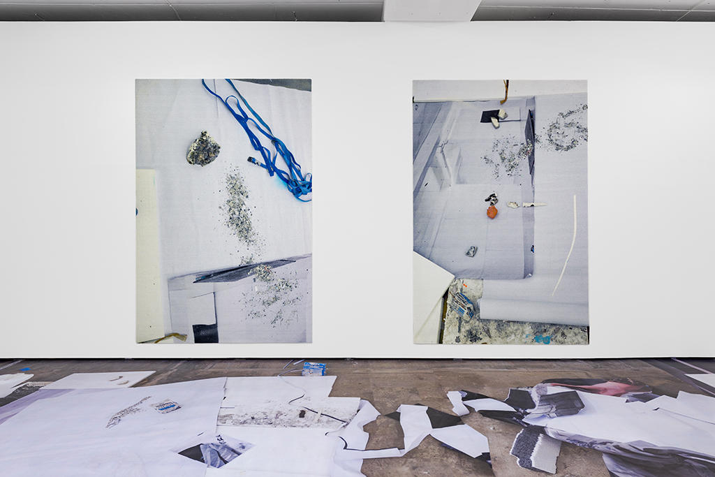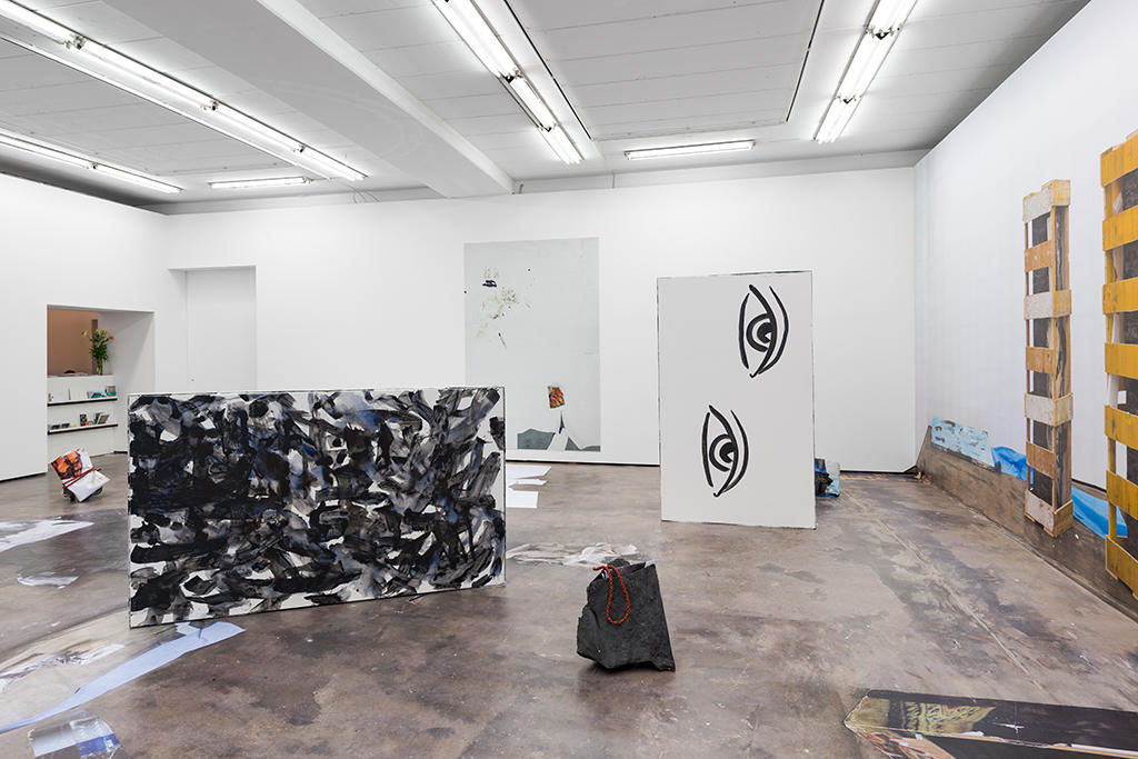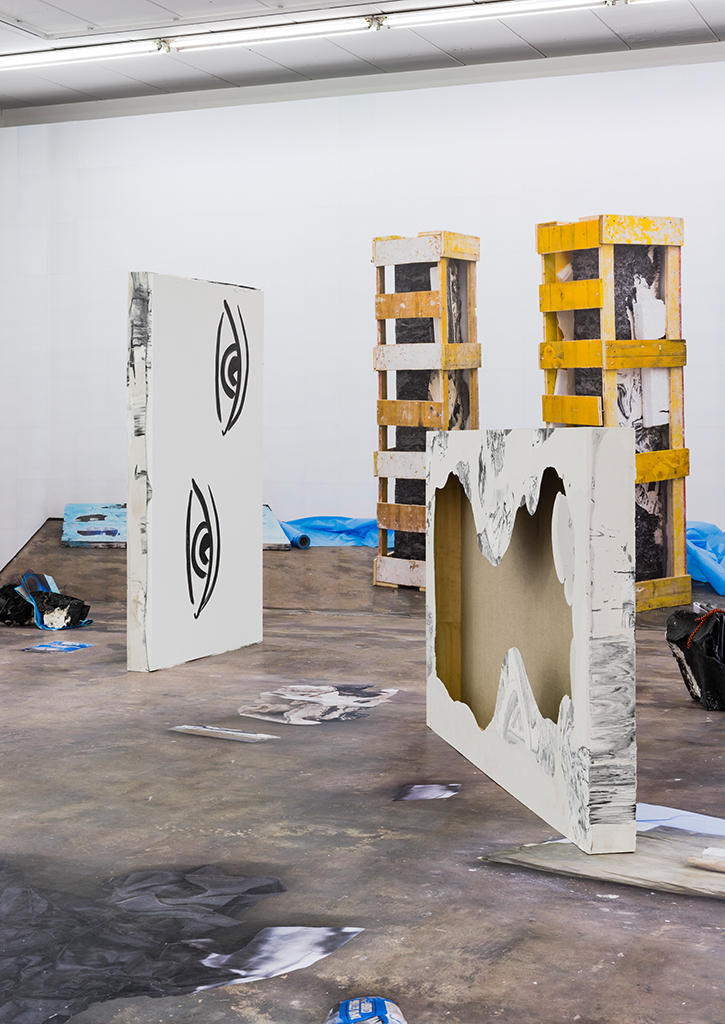 At WENTRUP, the new show 1EYE 2EYES includes a complete re-staging of the gallery space. New sculptures, photographic wallpaper, Jesmonite objects, carpets printed with photographs, and paintings form an all-embracing installation whose motifs have been generated from images previously recorded within the very same gallery space.
