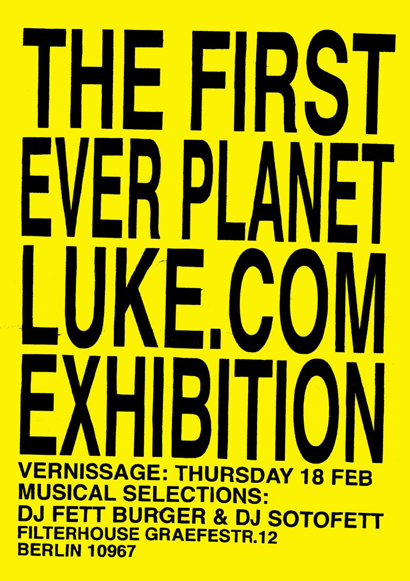 If you're in Berlin next week, it would be foolish to miss out on “The First Ever Planet Luke.Com Exhibition“. Plant Luke obviously is the creative platform of Lucas Hunter - chief honcho at Klasse Recordings and the driving force behind Graffiti Tapes and his musical alter ego Luca Lozano - from which he orchestrates his visual adventures into graphic design and beyond.