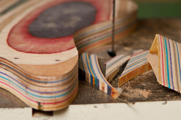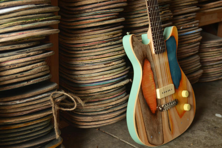 “After skateboards are used they go to the landfill. Help us reduce this waste. If you live in the Bay Area and have more than 10 skateboards you plan on throwing away, email contact@prismaguitars.com and we can organize a pick up.“