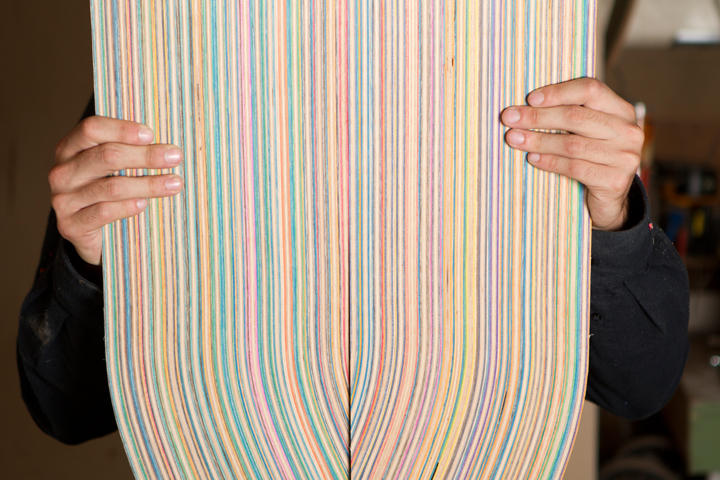 Prisma Guitars is the company of 22-year old Nick Pourfard, a San Francisco based artist, skateboarder and musician. With his company he's combining his passions and talents as he's building 100% handmade customized guitars composed of old skateboards that are either broken or used.