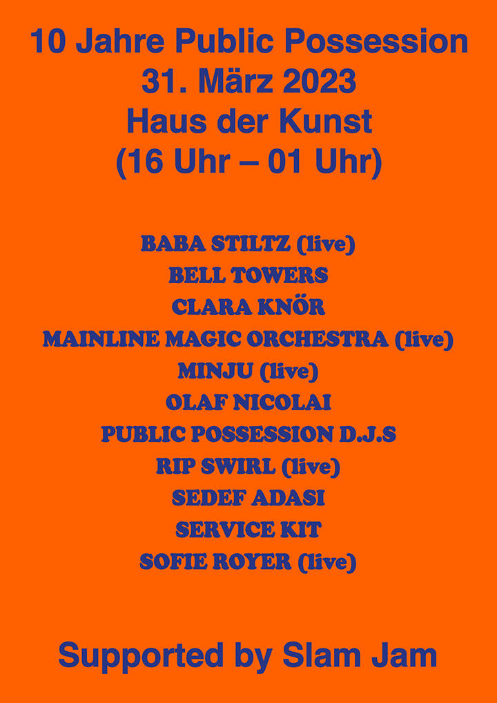 “On the occasion of Public Possession's 10th anniversary, the label holds a day long mini festival in the Westgalerie of Haus der Kunst. It coincides with Haus der Kunst Open Haus and all visitors are invited to enjoy a relaxed afternoon and night at the museum with free admission to all exhibitions and a diverse party program.