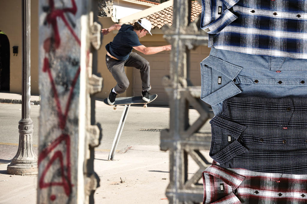 For the Fall Collection the Levi’s® Skateboarding design team were able to profit from more than one hundred years of workwear design expertise and fused that with a military design aesthetic inspired by the Army Corps of Engineers who helped to construct and transform the hometown San Francisco. The garments had to be simple, purposeful, offer mobility and be incredibly durable. All of these attributes are very similar to the needs of a skateboarder.