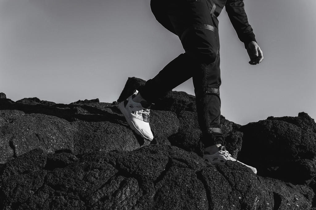 Inspired by the majestic, sandy and tranquil landscapes that prelude a volcanic explosion, the Furylite’s understated cream and white leather upper is contrasted with a sleek black leather heel and tongue for refined, utilitarian style and a more peaceful aesthetic.