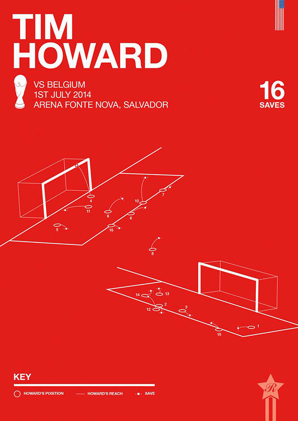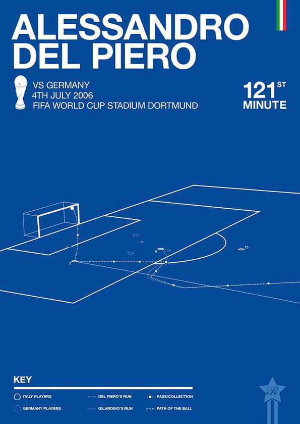 Over here at Lodown, we obviously can’t wait to see Germany playing against Argentinia this Sunday. Every singly win is a mix of happiness and the good old schadenfreude, and that’s only one of many reasons why we love football that much. The moment when Müller scored a goal and made the team win will probably be engraved in people’s mind for a lifetime. However, what if it would be possible to hang this very moment on your kitchen wall? Thanks to Manchester based graphic designer Rick Hincks who made it possible: through his minimalist eyes, Rick decided to illustrate the best World Cup goals of the past and present in order to re-ignite the emotion felt at that moment.