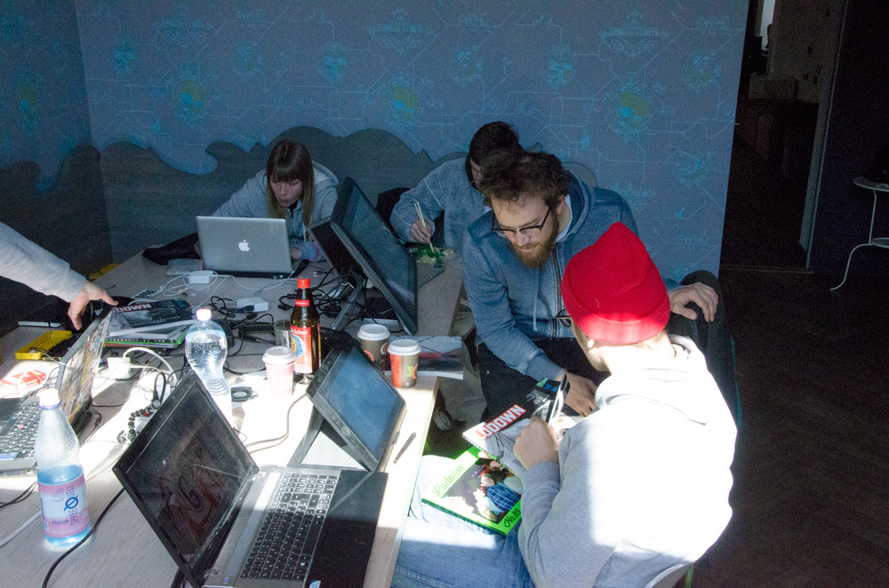 I think this presence right now is very inspiring. We live here for two weeks and it's like the big brother house without a camera. We have nothing else to do than to draw and paint walls.