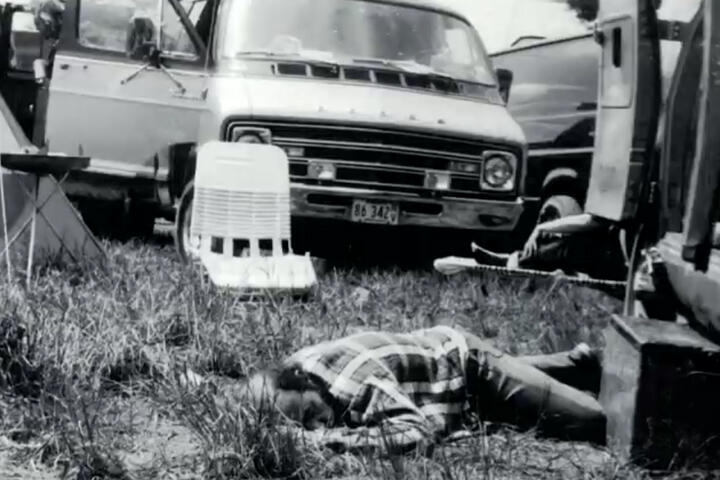 “It’s 1977 and the idealistic message of the hippie counter-culture has played a decade long game of telephone with America’s youth. Still searching for freedom and community in a post Vietnam world, groups of young people took to the open roads in shag-carpeted custom vans. They called themselves “vanners” and their culture was a strange cocktail of irreverence and hedonism. On the south side of Chicago, the van proved the perfect escape vehicle from the smog of the steel mills and refineries. It was here that a van club called Midwest Vans Ltd. was born. On Memorial Day weekend in 1977, these blue collar outcasts set out to build their own personal utopia, free of rules and restrictions. They erected a ramshackle resort town around a small pond and called it “Sleeze Lake”. When over 20,000 people showed up to the party, all bets were off!“