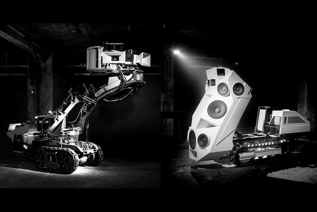With Schizo Sonics, Nik Nowak will realise a large-scale audio-visual installation comprising two monumental sound sculptures in the Kesselhaus at the KINDL, in which he engages with the phenomenon of sound as a weapon and medium of propaganda: Panzer and The Mantis confront each other in the 20-meter-high Kesselhaus and point to political proxy wars that have been—and continue to be—waged with sound in different contexts.