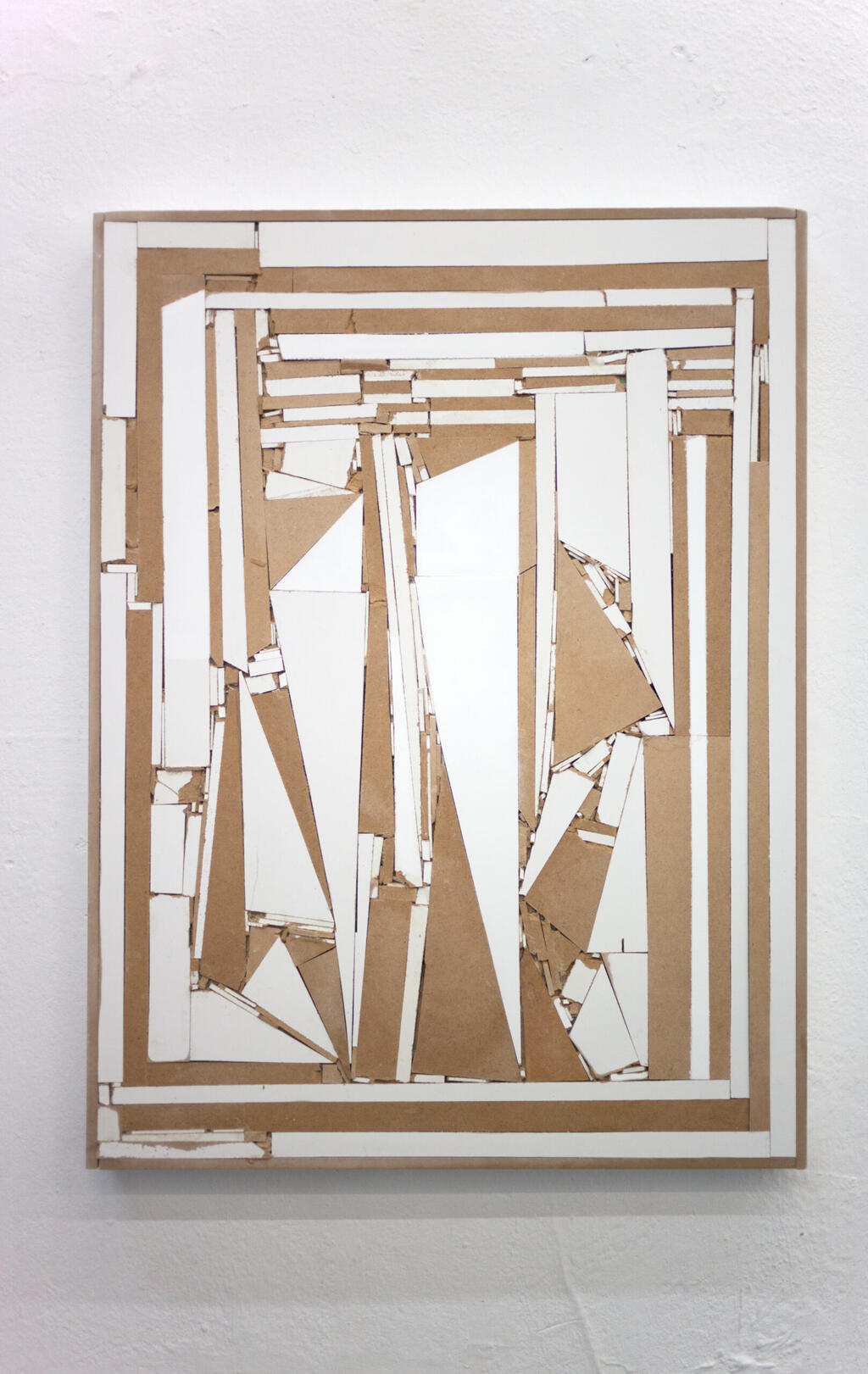 "Sperrmüllbilder" 10.02. – 09.04 2023 - shows a series of new wooden mosaics made especially for the exhibition at Kanya&Kage. These works are not, as the title suggests, made from old wood scraps and other waste, but share de-cluttering that the artist finds in urban space as a common motif. Views of old boards and pieces of furniture are slightly abstracted, but they attempt to reproduce the sculptures created by collaging the visual material in two dimensions, true to the material and to scale.