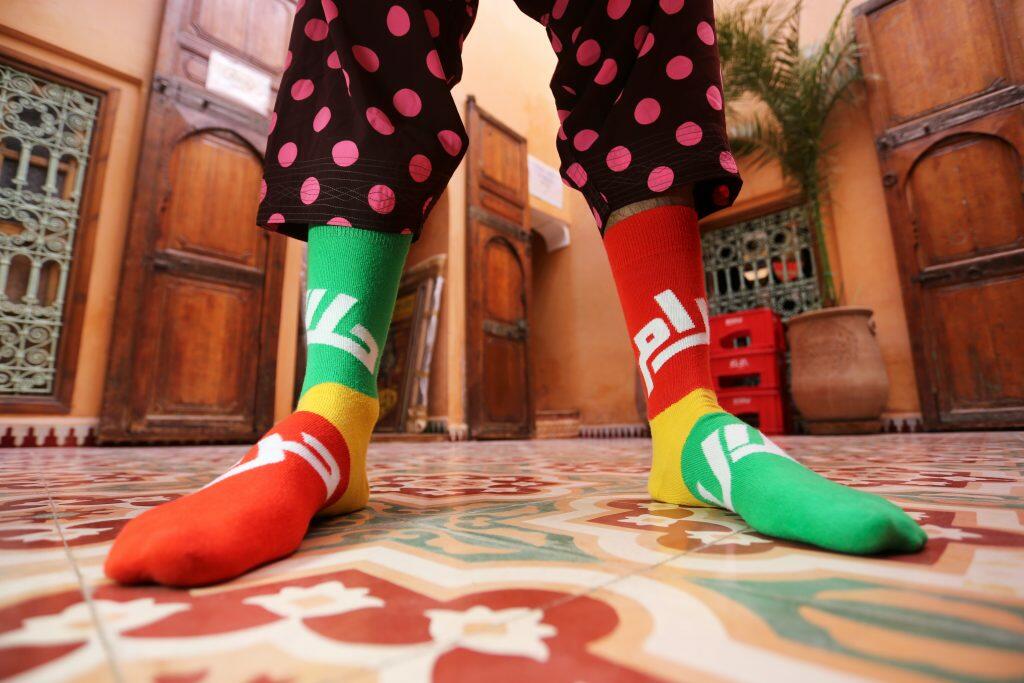 Offbeat Swedish sock brand Happy Socks has teamed up with Moroccan artist Hassan Hajjaj and his streetwear label, Andy Wahloo Apparel, for a colorful collection celebrating North African culture.