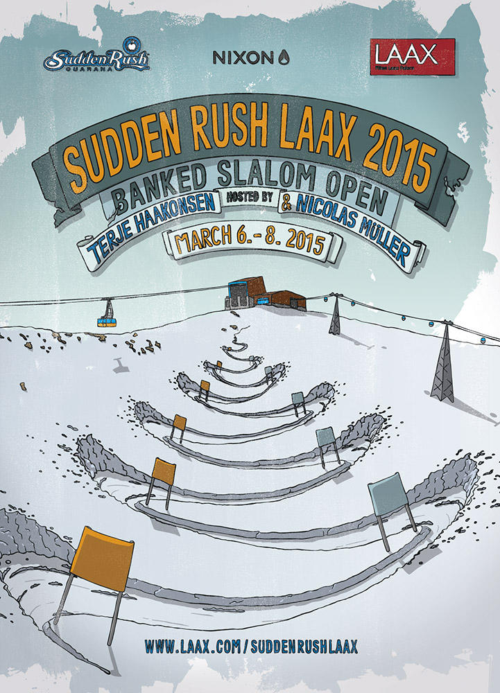 If you are in Switzerland on the weekend of 6-8 March, make sure that you visit Europe’s freestyle snowboard mecca Laax and check out the inaugural ‘Sudden Rush Laax Banked Slalom Open” presented by Terje Haakonsen and Nicolas Mueller.