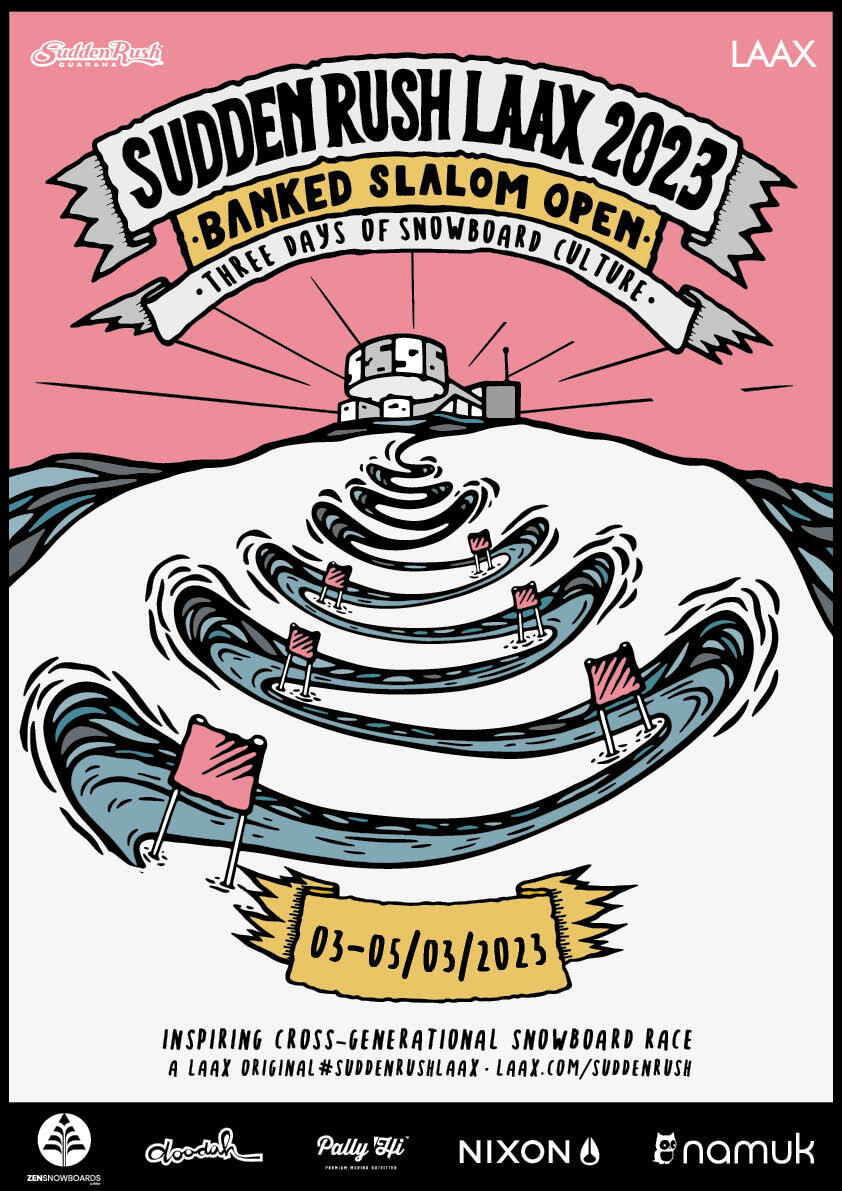 Registration for the Suddenrush Banked Slalom LAAX 2023 is now open online. Further information about the event is available on laax.com/suddenrush.
