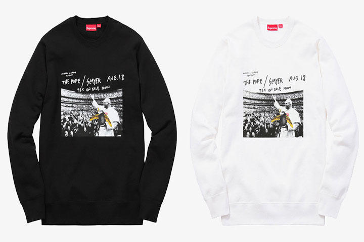 Supreme and Antihero drop the result of their latest collaboration this Thursday. It features an extensive range of garments and decks, including a defaced image of the Pope!