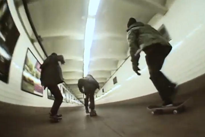 First you saw that very unconventional footage of some skaters tearing up rooftops in New York City. Then there was that fantastic photo by Allen Ying of the insane ollie over the train tracks. Now there is the subway skating section of Colin Read's “Tengu: God of Mischief“. Still you should order your copy of the independent skate video over here.