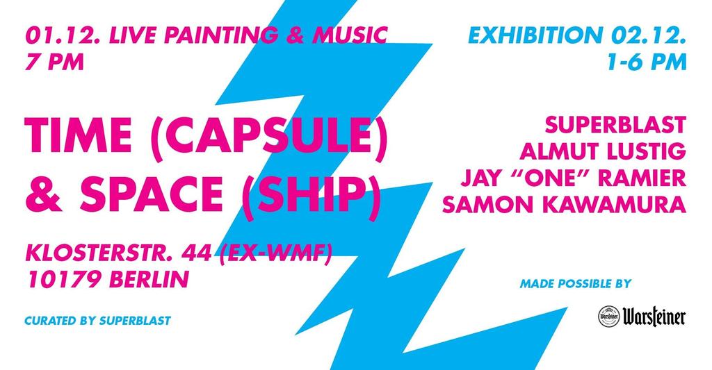 SuperBlast, Berlin. SuperBlast also has its roots in graffiti writing. His current work deals with universal mythology and religious iconography. The futuristic imagery in his large-scale murals is characterized by universal, mythological, symbolic shapes and figures. SuperBlast is not only active as an artist for the performance and the exhibition, but is also responsible as curator for the overall concept of the two days.
