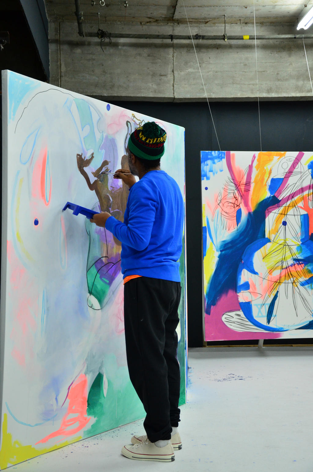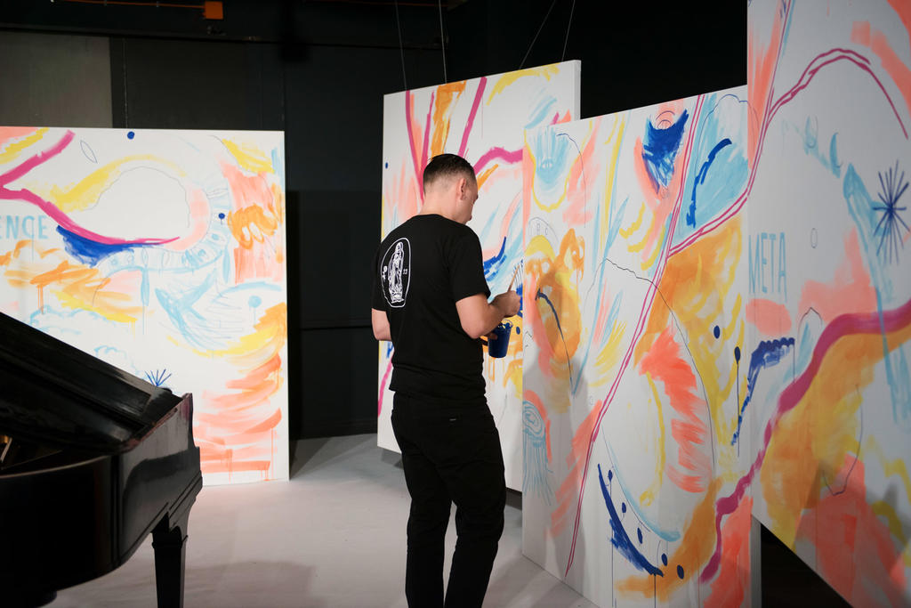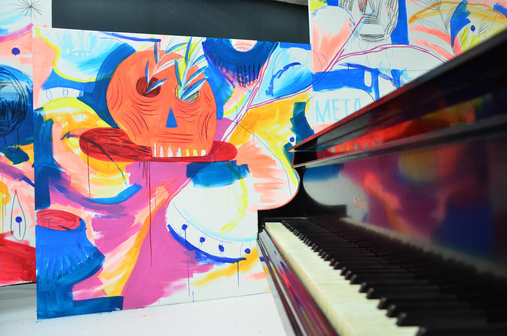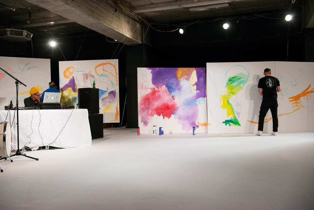 a dream come true. I wanted to bring music and painting together for a long time, as I mostly listen to music while painting and love the way it can bring me in a state of consciousness and/or peace. It helps me to disconnect with the side of my brain that is judging too much to paint more freely. Getting your favorite people to have fun together is magic. As everything fell in place, from schedules to funding, we were able to put the show together in a very fast way. I’m very happy how it played out and that everything went well aka as unplanned.