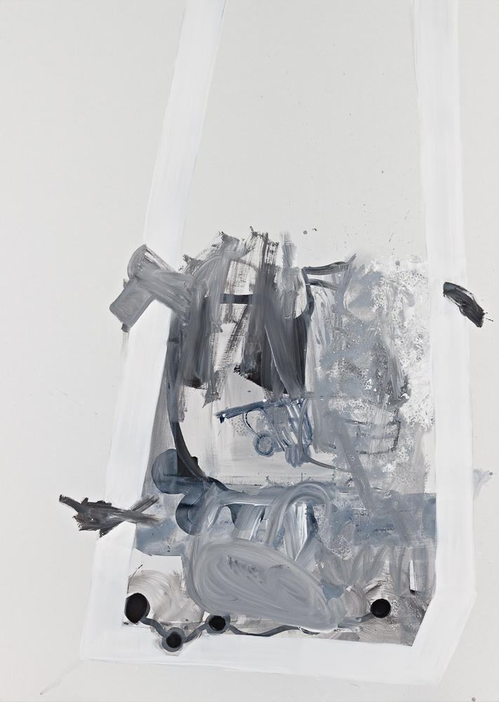 A number of Pils’s images from 2010, rendered starkly in black ink on white paper, consist of irregular or fragmentary grids of ruled lines overlaid with wavy lines at once related and unrelated to the grid. Sometimes the waves have been coordinated with segments of the grid, at times they become tangent to the ruled lines, but just as often they violate boundaries to establish forms of interference. There are also splotches of ink that might be deliberately positioned or merely residues of random accidents. To complicate matters, these irregular spots might be accidents converted to instances of deliberate placement. In sum, Pils’s drawings exist on an indefinite edge of order and disorder, as if they were derived from an orderly past (existence as we have constructed it) in recognition of a disorderly present (existence as we live it). Is this effect intentional? If the drawings revealed an answer to this question, they would no longer be situated at the edge. They would instead display the order we associate with a rational plan.