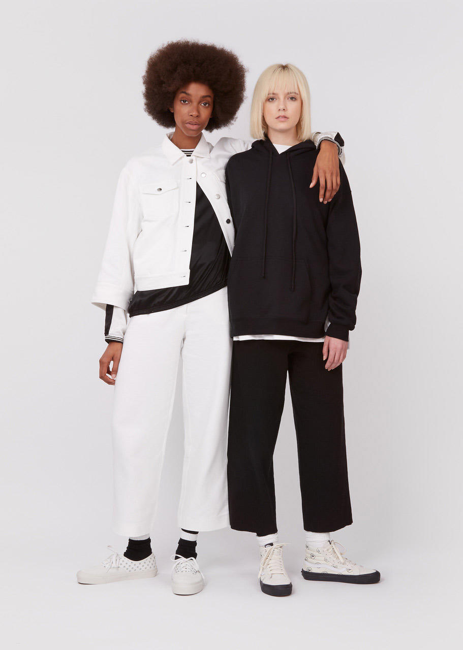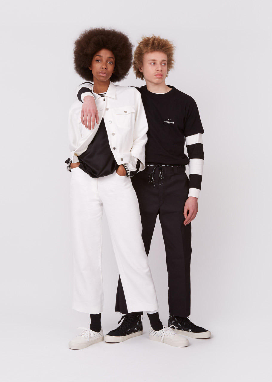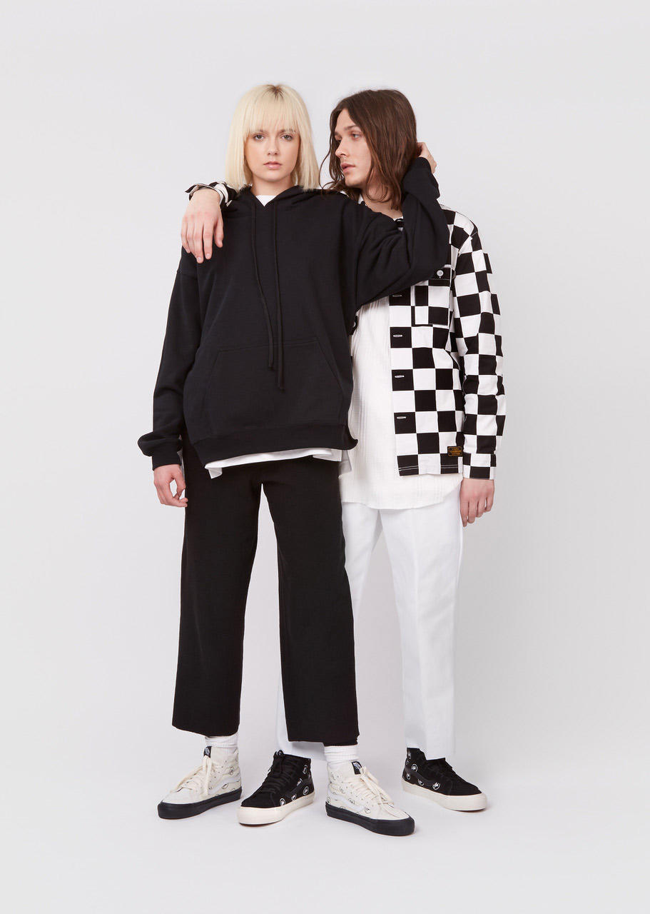 Inspired by Newton’s law of physics which states that ‘for every action there is an equal and opposite reaction’, with forces on an object being consistently identical, the pack comprises three shoes where both women and men are equally represented. The collaboration features a white and black Sk8-hi that runs in a female size break, with the inverse colours appearing on a second Sk8-hi in men’s sizing. The trio is completed by a white and black authentic available in a full unisex size range.