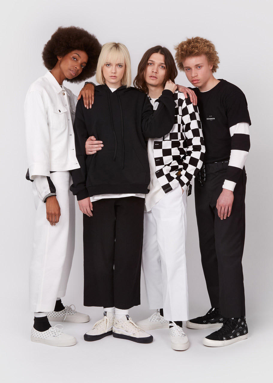 Equal | Opposite is the theme and the collection is a ‘Vault by Vans’ unisex pack that features the Goodhood monogram and logo in repeat across the uppers and laces of the two classics Sk8-hi and Authentic.
