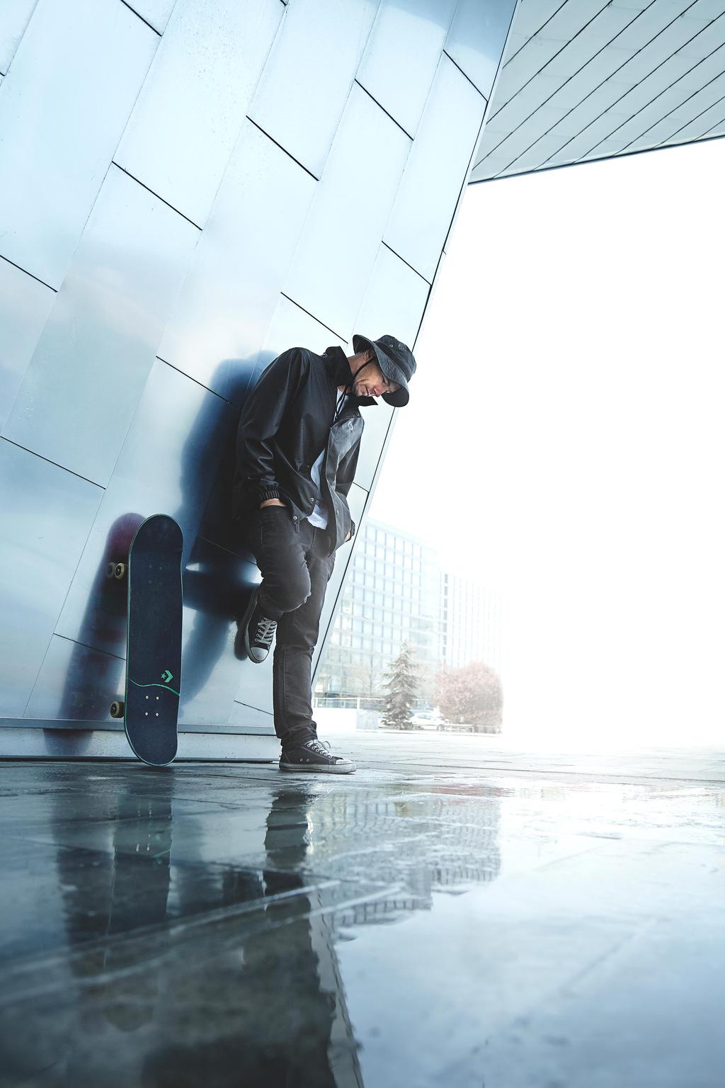 Skatewear meets Rainwear while blue skies can turn quickly into an dark armageddon. Californian brand Volcom joined forces with the Danish brand RAINS to save you from harsh conditions with a jacket and hat, that inherit the weatherproof functionality of Rains. Danish skateboarder and Volcom team rider Rune Glifberg was the perfect choice to reperesent the collection in a dynamic lookbook and video that was shot in Copenhagen, Denmark.