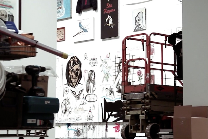 Here's a fantastic portrait on LA based artist Wes Lang - remember our cover story in LDWN 84? - that was shot to celebrate his current solo-show “The Studio“, which is on display until September 7, 2014 at the ARoS Aarhus Museum of Art in Aarhus, Denmark.