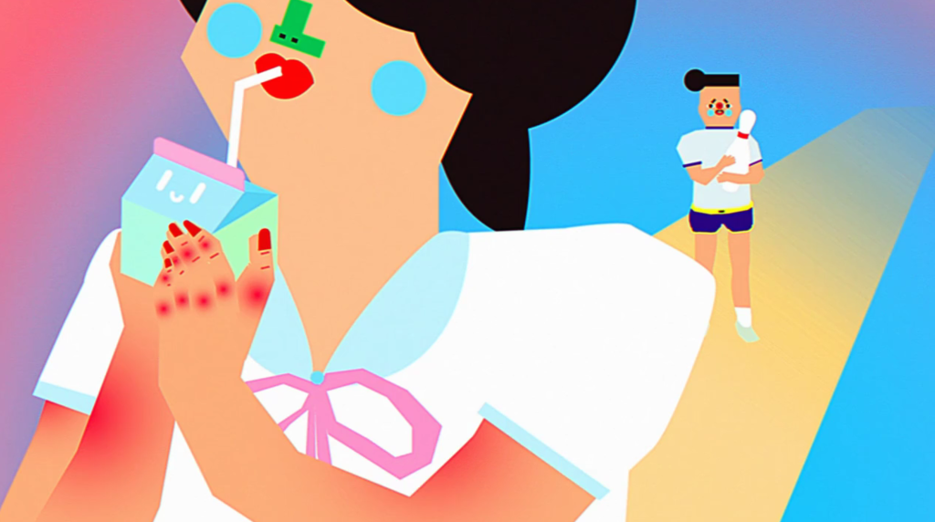 The new video of Chinese artist Wong Ping depicts the story of a young boy’s erotic fixation on a classmate, which has her boobs on the back. The animation is a very colourful one once again, and the characters are pretty close to the Japanese Kawaïï-culture with the major difference that they are actually much more weird and surreal. Indeed, the scenario is quite provocative but in a funny way, for instance: having a breast in the back is not a handicap but actually a very much welcome attribute in terms of doing it doggy style. A curious and very unusual vision of love this is.