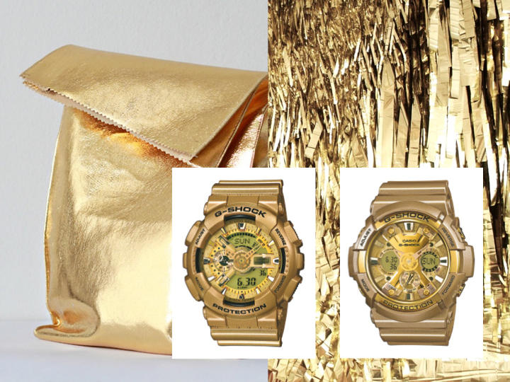 The Gold Series watches are based on the earlier G-SHOCK GA-100,GA-110, GA-200, and GA-300 models which featured a mechanical-design watchface combining analog and digital features in a large case, and the globally popular G-SHOCK DW-6900 models with a rounded shape.