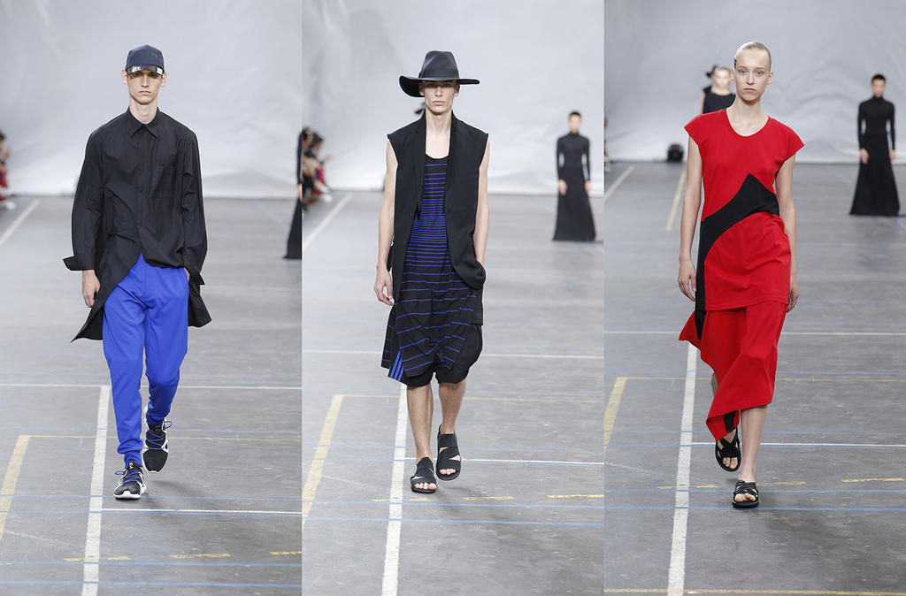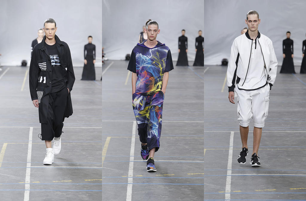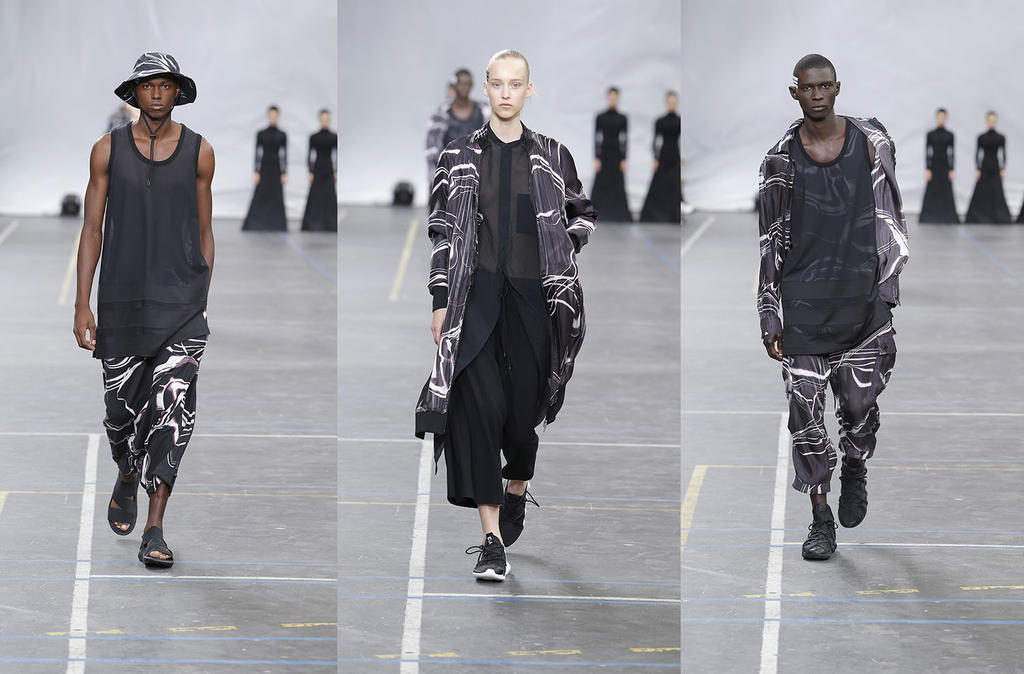 Y-3 just previewed their Spring/Summer 2016 collection, focusing on motion and sheer movability. Yohji Yamamoto himself mentioned that he's not interested in fashion, but in how the clothes can be cut. I think you can feel his urge to re-invent things when looking at the collection and get a glimpse of the kinetic grace with sheer, fluid, ultra-light pieces designed to move.