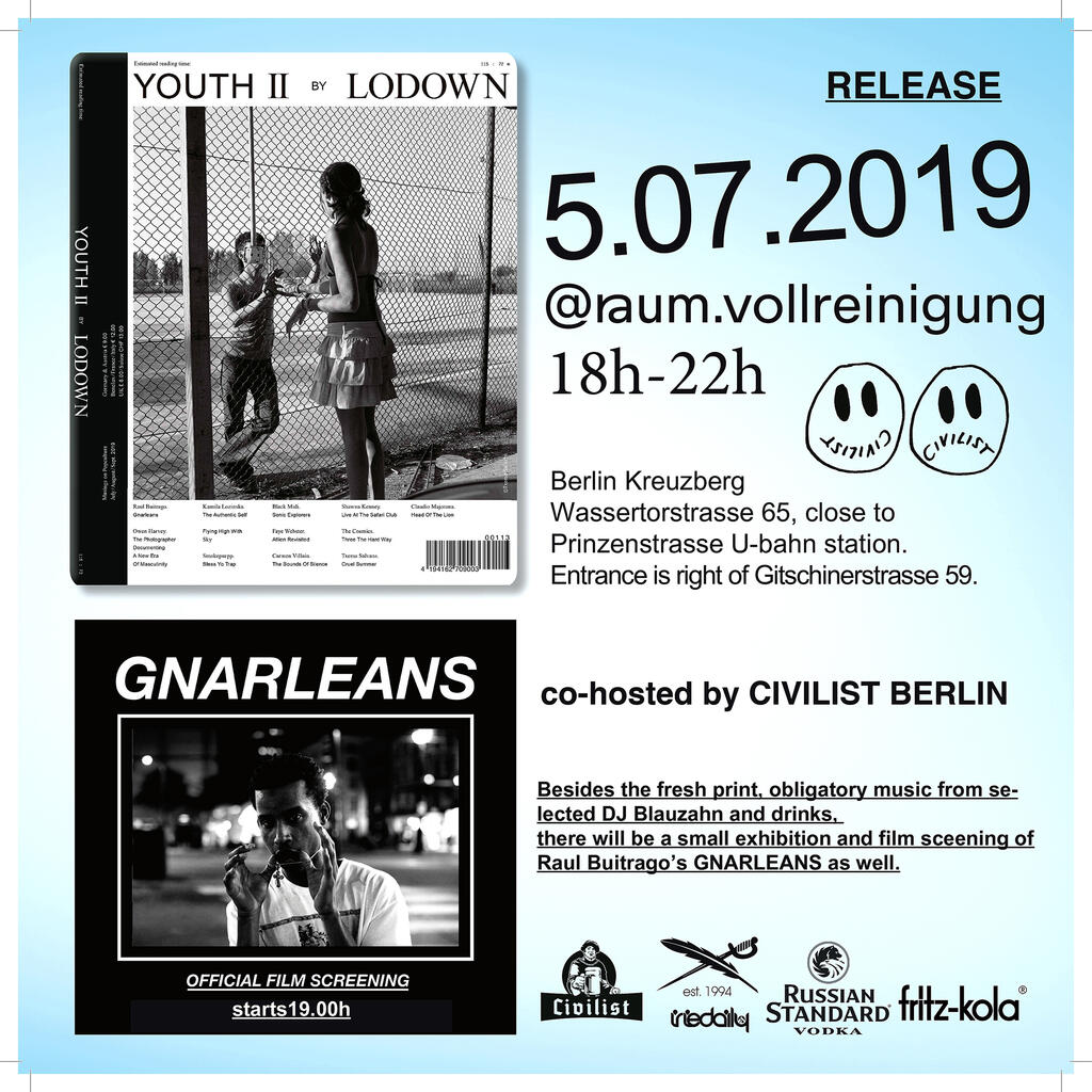 Besides the fresh print, obligatory music from selector DJ Blauzahn and drinks, there will be a small exhibition and film sceening of Raul Buitrago’s GNARLEANS as well.